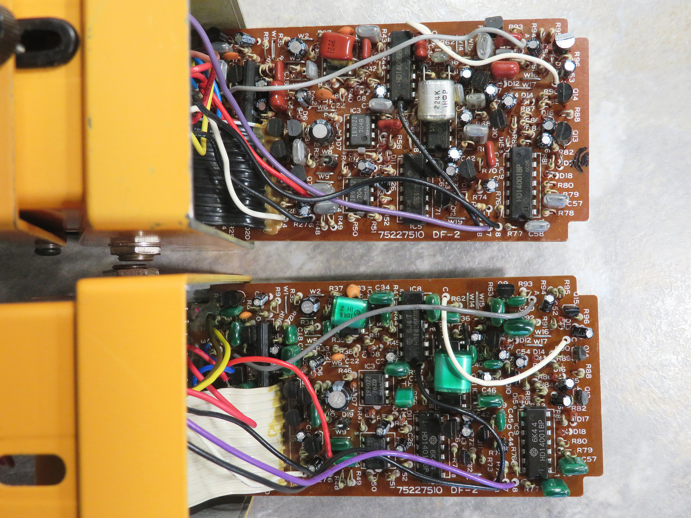 So with the gathered knowledge of another twenty years and improved skills I bought another MIT DF-2 a few months ago. As soon as I plugged it in I rediscovered the undesirable noise: a constantly ticking sound whenever the pedal is engaged. A cycling "tic-a-tic-a-tic-a".